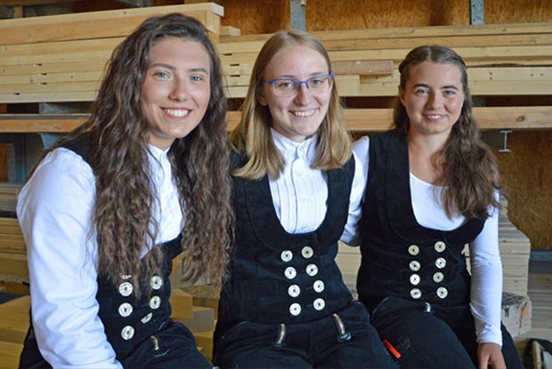 Frauenpower im Zimmererhandwerk: v.l. Kathi, Elisabeth und Sabrina Schmid. An ihrem Beruf gefällt ihnen unter anderem die Arbeit im Team.
