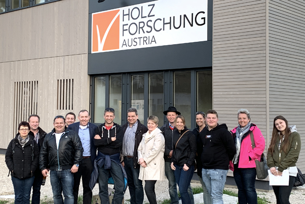 Auf dem Programm stand ein Besuch samt Führung durch die Räume der Holzforschung Austria. Außerdem schauten sich die mittelfränkischen Zimmerer das Quartier Mühlweg an - Wohngebäude, die 2006 in Holzbauweise errichtet worden waren.