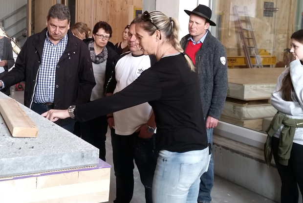 Holz und Beton im Verbund schauten sich die Teilnehmer des Wien-Ausflugs bei der Holzforschung Austria an.
